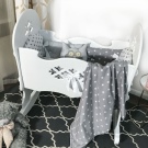 يعد السرير من أكثر الخيارات شيوعًا للأطفال الصغار. بغض النظر عن الفترة المحدودة لاستخدام سرير الأطفال هذا ، سيشعر الطفل بالحماية حتى 5 أشهر وسيكون من السهل هزّه.
