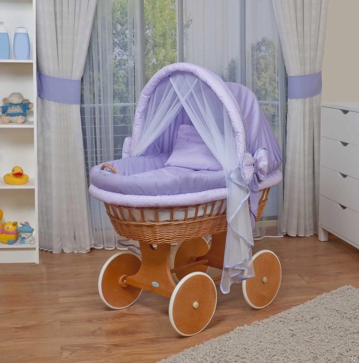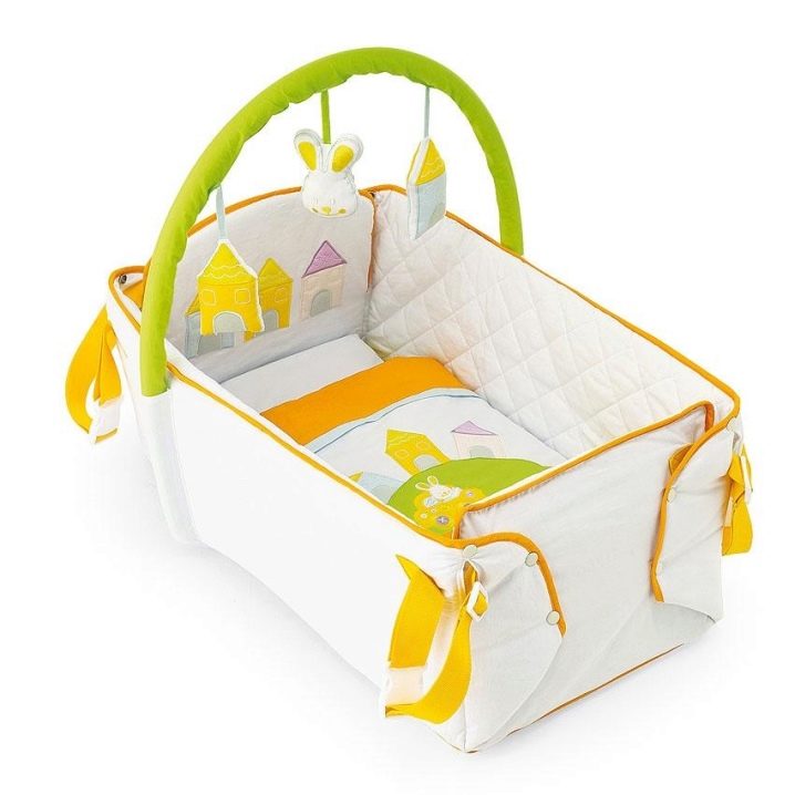 سيكون المهد المحمول هدية ممتازة للآباء الصغار. قاعدة الخشب الرقائقي ، المغطاة بالقماش ، ستسمح للطفل بالجلوس بشكل مريح فيه. بالإضافة إلى ذلك ، يمكن ربط هذه النماذج بقاعدة عربة الأطفال. يمكن أيضًا استخدام الحامل كمغلف أو سرير محمول للنوم.