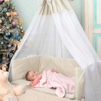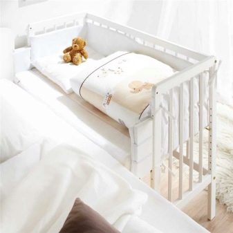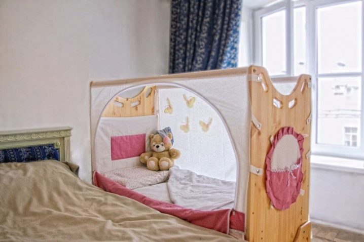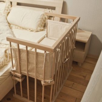 لكن بمرور الوقت ، يبدأ الآباء في الشعور بالضجر من النوم معًا. بالإضافة إلى ذلك ، يصعب أحيانًا على الطفل التعود على سريره. تساعد نماذج أسرة الأطفال هذه في تعليم الطفل أن يكون مستقلاً ، لكنها في الوقت نفسه لا تحرمه من فرصة أن يكون بالقرب من والدته. في الوقت نفسه ، يمكن للأم أن تكون بهدوء بالقرب من الطفل ولا تخاف من سحقه في المنام..
