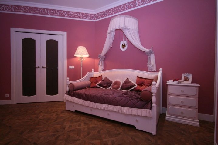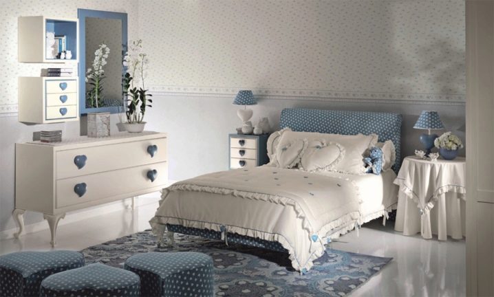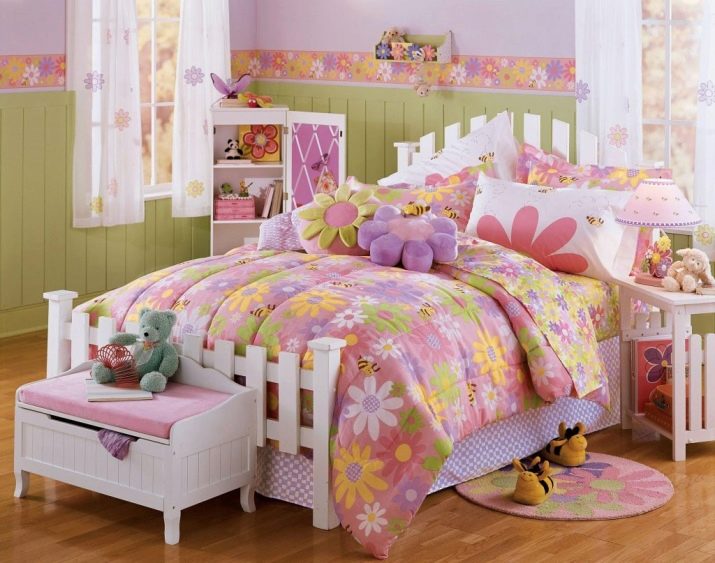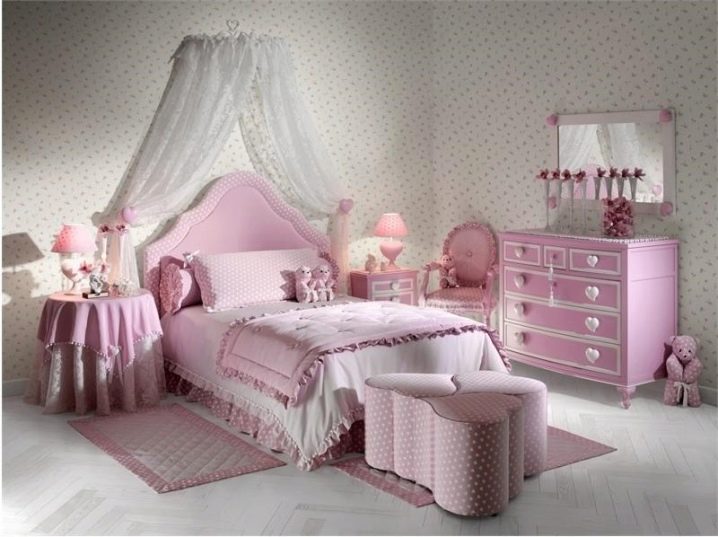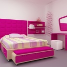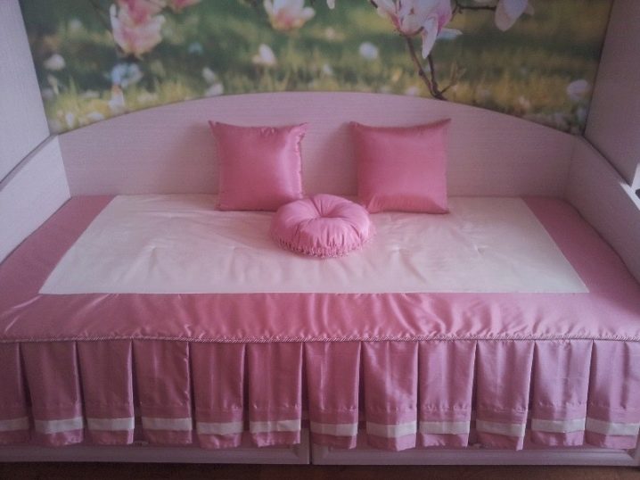 عادة ، في غرفة نوم الفتاة ، لديهم أثاث نوم قياسي – فردي أو واحد ونصف. تقليديا ، يُعتقد أن شرشف السرير غير مرغوب فيه ضيق وقصير. ليس ممتعًا من الناحية الجمالية إذا كانت قطعة الأثاث هذه تغطي الأرضية. مثالي – يُخفي ملحق السرير هذا الفراش تمامًا على سرير الفتاة ويتدلى كفين أخريين من حافة السرير.