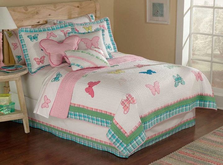 من المقبول عمومًا أن الوظيفة الرئيسية لمفرش سرير الأطفال لسرير الفتاة في غرفة النوم هي حماية أغطية السرير من الغبار والحطام. بالإضافة إلى ذلك ، فإن شرشف السرير يخلق جوًا في الغرفة بفضل نظام الألوان والنقش عليه والشكل ووجود إكسسوارات صغيرة مسلية. البطانية الساطعة مناسبة لغرفة نوم الطفل – يمكن أن تجعل أي غرفة تفتقر إلى الإضاءة الساطعة والمريحة.