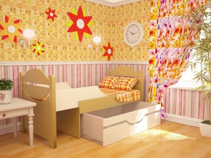 - توفير مساحة – تشغل الأسرة المزودة بآلية انزلاق مساحة كبيرة جدًا. يتحرك الطفل بعيدًا فقط عندما يكون نائمًا ، ويوفر مساحة في غرفة الأطفال ، وهو أمر مهم بشكل خاص للشقق الصغيرة..