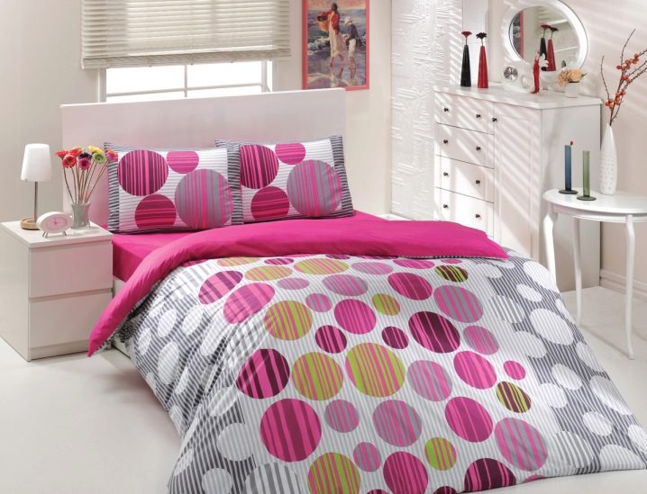 في الأساس ، يتم بيع الفراش في تكوين ثابت: غطاء لحاف ، ملاءة ، غطاء وسادة. مجموعات مزدوجة ونصف كاملة مع كيسين وسادة.