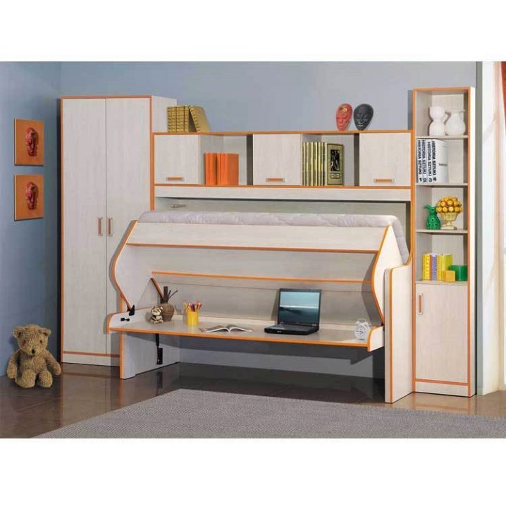 الفكرة وراء هذا الأثاث هي أنه يمكن تعديل السرير إلى خزانة ملابس أو مكتب. في بعض الأحيان ، تكون هذه الأسرة مجهزة بآلية قابلة للطي ، مما يسمح لك بوضعها في وضع رأسي أثناء النهار وفتحها للنوم. يمكن أن يحتوي هذا السرير أيضًا على مصدات ، خاصةً إذا كان يقع على ارتفاع معين. سيسعد هذا التصميم حقًا نسلك الذي يكبر ، إذا كان فقط من خلال حقيقة أنه يلغي الحاجة إلى ترتيب السرير كل يوم – فهو يخزن بالداخل.