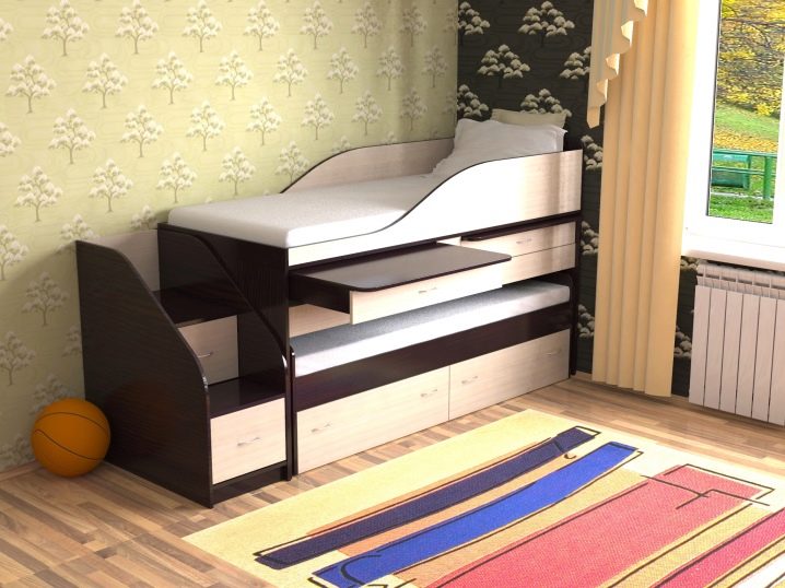 في هذا النموذج ، ينزلق سرير واحد من تحت الآخر. لا يوفر هذا الخيار المساحة فحسب ، بل يعتبر أيضًا أكثر أمانًا من الخيار ذي المستويين. يمكن أن تكون الأسرة المنزلقة من طابقين أو حتى ثلاثة طوابق. الطابق الأول ، كقاعدة عامة ، غير مجهز بمصدات ، ولكن في المستوى الثاني واللاحق ، فهي ضرورية ببساطة. يمكن أن تكون مصدات أسرة الأطفال ثابتة وقابلة للإزالة. الجوانب الثابتة هي جزء إلزامي من أسرة مكونة من طابقين ، بالإضافة إلى نماذج خيالية مصنوعة على شكل سيارات وقوارب وعربات وغيرها من السمات الرائعة.