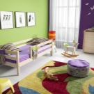 راحة هذا الأثاث واضحة: يمكن استخدامها لفترة طويلة. يمتد السرير في الطول ويتحول من نموذج لمرحلة ما قبل المدرسة إلى مكان نوم للمراهق. جوانب هذا السرير مغلقة تمامًا من ثلاث جهات. من الجانب الأمامي الأسوار قابلة للإزالة أو تغطي الجانب الأمامي جزئيًا.