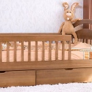 - احتمالية الاصابة. إذا كانت الجوانب مصنوعة من مواد صلبة. قد يصطدم الطفل. لن يصاب بجروح خطيرة ، لكن في المنام قد يخاف من المفاجأة. لذلك ، إذا كان الطفل ينام بقلق ، فمن المنطقي اختيار سرير بجوانب ناعمة. إطار هذه الجوانب ، كقاعدة عامة ، صلب والخارج مغطى بالمطاط الرغوي والنسيج..