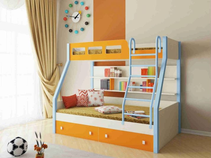خصوصية هذا التصميم هو أن الرصيف نفسه يقع في الأعلى ومجهز بمصدات لسلامة الطفل وسلم للتسلق ، وفي الطابق الأرضي يمكن أن يكون هناك خزانة ملابس أو مكتب أو كليهما. نموذج مناسب للغاية لشقة صغيرة. غالبًا ما تشتريه العائلات التي لديها طفلان أو أكثر في نفس الغرفة. عيب هذا السرير هو أن الهواء في الطابق العلوي أكثر دفئًا وقد يكون الطفل شديد الحرارة..