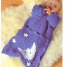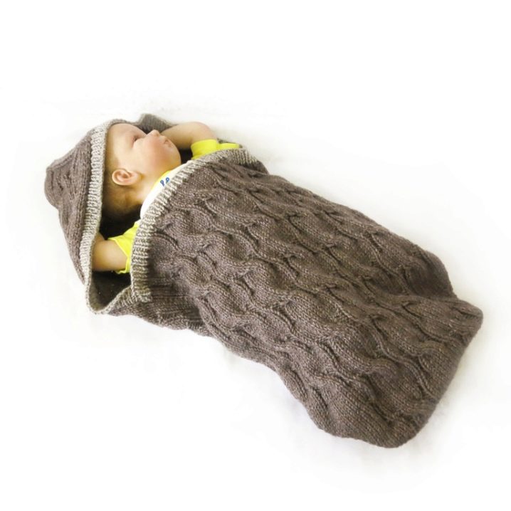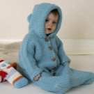 - النموذج 8. كيس نوم كروشيه لحديثي الولادة بياقة عريضة. مثالي للاستخدام في الهواء الطلق أثناء المشي لمسافات طويلة في درجات حرارة منخفضة نسبيًا.