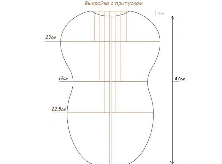 على أحد الأنماط ، ضع علامة على خط العنق. يجب أيضًا قطع هذا الجزء من كيس النوم عموديًا إلى جزأين متساويين ، وعلى طول هذا القطع سيتم وضع السوستة ذات العداءين في المستقبل. عندما يتم خياطة السوستة والانتهاء من الرقبة ، فقد حان الوقت لتراكب الجزء الأمامي والخلفي والخياطة معًا ، مع وضع اللحامات للخارج. جاهزة جدا ، مليئة بحب والدتي واجتهادها ، كيس نوم!