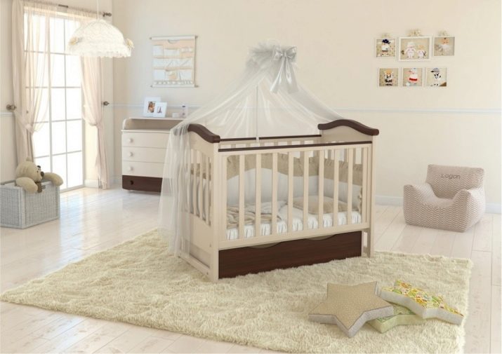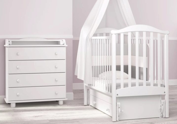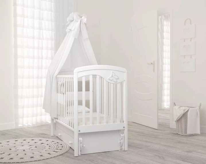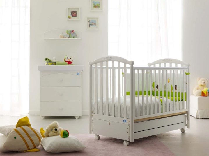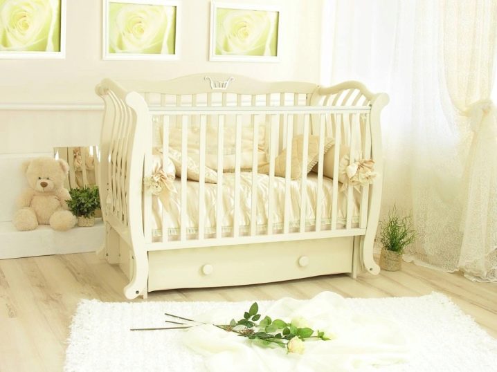 عادة ما تصنع أسرة الأطفال بظلال مختلفة من لون الخشب ، ولكن هناك استثناءات. السرير الأبيض ، المزين بألوان رقيقة من النعناع أو الأزرق ، سوف يضبط الطفل على مزاج تأملي ويخلق مزاجًا هادئًا لوالديه. سوف يتناسب تمامًا مع تصميم الحضانة الكلاسيكية بأسلوب رومانسي..