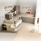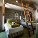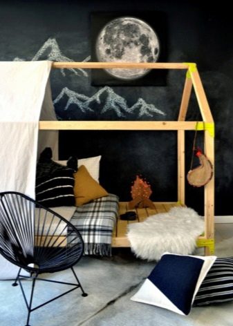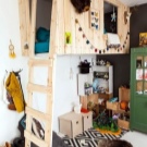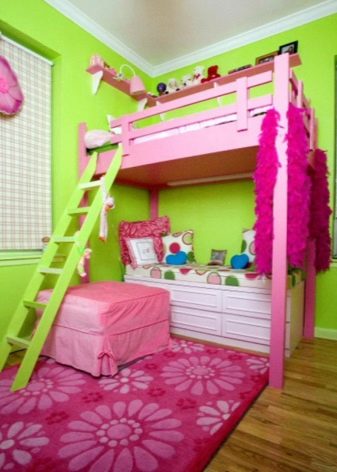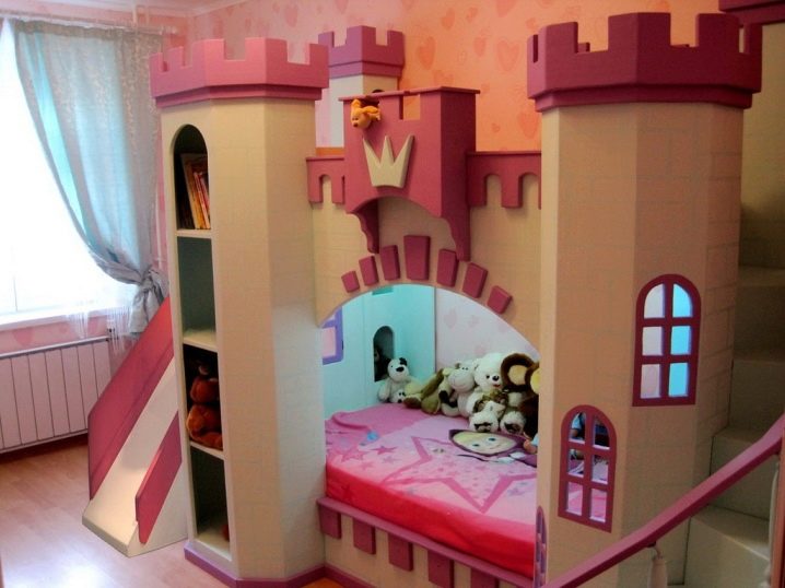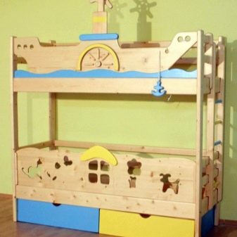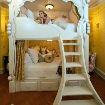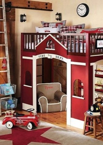 سرير بدورين. الأطفال يحبون هذه الأسرة كثيرًا ويأتون بتعديلات مختلفة. يتم ترتيب مكان للنوم في “العلية” ، يوجد في الطابق السفلي منطقة للعب أو العمل ، وركن رياضي ، وخزانة أو خزانة ذات أدراج لتخزين الأشياء. يمكنك النزول من العلية باستخدام منزلق جانبي أو حبل أو عمود (مثل البحارة). عليك أن تتسلق قضبان الحائط ، حبل ، سلم.