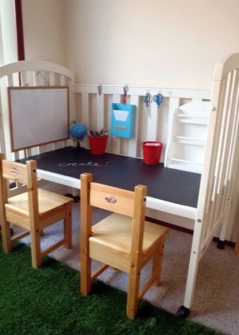 أصبحت الأسرة القابلة للتحويل أكثر شيوعًا بسبب عمرها الافتراضي (حتى 12 عامًا). ينمو مكان النوم في مثل هذه النماذج مع الطفل. يمكن تضمين مهد محمول وطاولة تغيير ورفوف وخزانة ذات أدراج بشكل قياسي. بمرور الوقت ، تتم إزالة الجوانب العالية ، ويتم وضع الخزانة ذات الأدراج بجوار السرير. نتيجة لذلك ، يزيد حجم الرصيف بمقدار 60-70 سم.