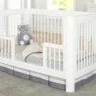 مصدات ناعمة تحمي الطفل من التعديات من الحيوانات الأليفة. بالإضافة إلى ذلك ، سوف تحمي الطفل من المحفزات الخارجية الأخرى. تبدو المصدات الخشبية جيدة في أي مكان داخلي وهي الخيار الأكثر أمانًا. سوف ينقذون الطفل من السقوط أثناء النوم. غالبًا ما تستخدم جوانب النسيج الناعم مع الجوانب الخشبية. إنها ضرورية لحديثي الولادة والأطفال الذين بلغوا سنة ونصف..