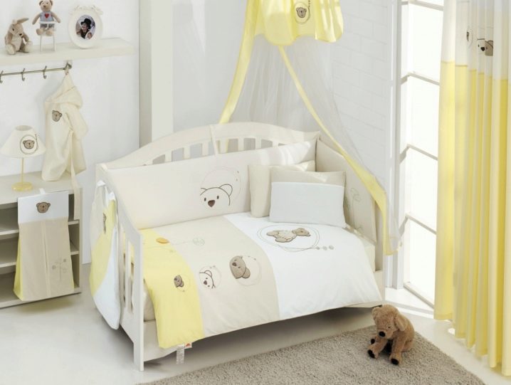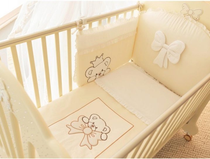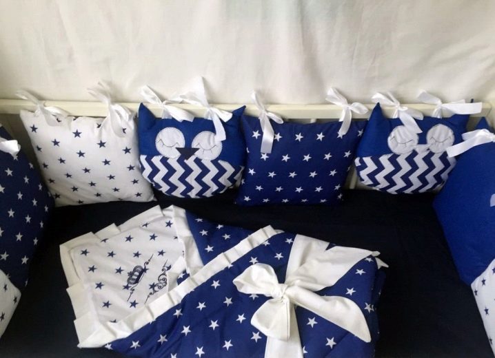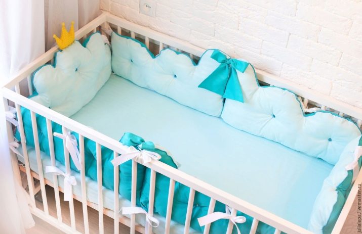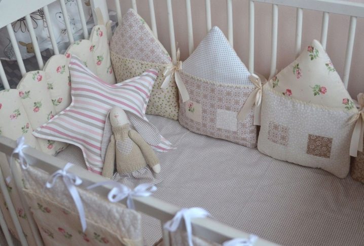 في الموسم الماضي ، الأكثر شعبية هي مصدات – منازل وقطط – مصدات. يمكن شراء هذه المجموعات من متجر أو خياطتها وفقًا لرسم فردي. من المفيد دائمًا الاحتفاظ بمجموعة إضافية من المصدات في المخزون. عندما يكون أحدهم في الغسيل ، يمكن للوالدين دائمًا تعليق قطع الغيار.