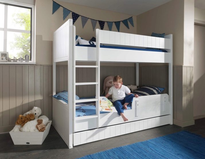 سرير من مستويين لا يمكن تصوره بدون وجود جوانب. إنه لأمر جيد إذا كانوا على مستويين. ستحمي الجوانب العالية في الطبقة العليا الطفل من السقوط. يمكن أيضًا اعتبار هذه الأسرة خيارًا اقتصاديًا لأثاث الأطفال. من المستحيل عدم ملاحظة أن هذه النماذج توفر مساحة كبيرة في غرفة الأطفال..