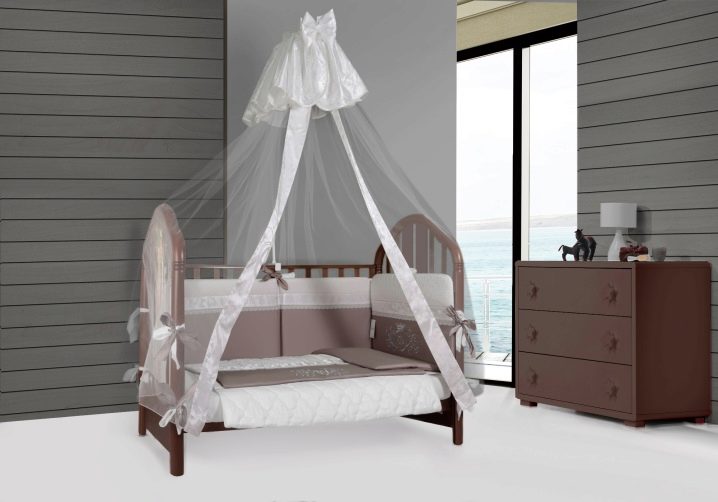 يستخدم العديد من الآباء مظلة بالإضافة إلى الجوانب. يسمح لك بحماية طفلك من الضوضاء الخارجية. الخيار الشائع هو مانع السقوط. يتضمن تصميمه إطارًا بلاستيكيًا وشبكة واقية. هذا النموذج قابل للإزالة. عندما يكبر الطفل ، سيحتاج الوالدان فقط إلى إزالة المحدد دون تغيير السرير نفسه. تساعد وسادات السيليكون على الجانبين أيضًا في حماية طفلك من الإصابة. هناك جوانب قابلة للطي وقابلة للطي. هذه أيضًا حماية جيدة من الوقوع في حلم الطفل..