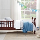 سيكون السرير ذو الجوانب القابلة للإزالة خيارًا ممتازًا لطفل صغير يبلغ من العمر عامين. مزيج من اللون الأزرق الفاتح والأزرق والأبيض مثالي لغرفة مصنوعة بأسلوب بحري..