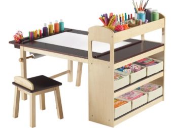 تعتبر النماذج خيارًا جيدًا لطاولة الأطفال ، حيث يمكن تغيير ارتفاع سطح الطاولة اعتمادًا على ارتفاع الطفل. وبالتالي ، يمكنك توفير ميزانية الأسرة بشكل كبير ، لأن جدول هذا التصميم سيعمل لأكثر من عام واحد. لا يجب عليك شراء طاولة مصنوعة من مواد باهظة الثمن لطفلك. من غير المحتمل أن يتعامل مع الأثاث بعناية ورهبة خاصة ، حتى لو كان مصنوعًا من أغلى أنواع الخشب. قريبًا جدًا ، ستظهر آثار قلم حبر جاف وأقلام فلوماستر وبقايا من البلاستيسين على الطاولة.
