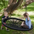 تعتبر الشجرة القوية الموجودة في الموقع مثالية لتثبيت أرجوحة معلقة. على سبيل المثال ، سيحب الأطفال أرجوحة “شبكة العنكبوت” بالحبال والعوارض المطاطية. يمكنك التأرجح في مثل هذا التأرجح في أي اتجاه ، ولكن فقط حتى لا يصاب الأطفال بأشياء أو هياكل قريبة.