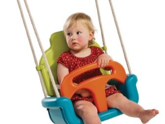 تتمثل ميزة الأرجوحة المعلقة على الحبال في انخفاض تكلفتها وسهولة التخزين والنقل. يمكن وضعها في أي مكان ، بما في ذلك المقربين من الوالدين. يجب أن تكون جميع تقلبات الأطفال في هذا العمر مجهزة بمسند ظهر ومحدد أمامي.