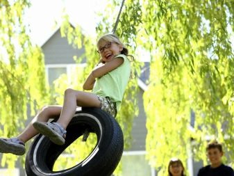 - تأرجح موادهم في متناول اليد. إنها مصنوعة من كل ما هو في متناول اليد: إطارات السيارات القديمة ، وألواح التزلج القديمة ، والعصي ، واللوحات ، إلخ. أحد أكثر التصاميم شيوعًا هو الإطار المتأرجح المعلق: عندما يتم ربط حبل بالإطار وتثبيته على شجرة. يلف الطفل ساقيه حول الإطار ، ويمسك بالحبل ويتأرجح في جميع الاتجاهات ، مما ينتج عنه نوع من الكاروسيل. توازن ممتاز وتدريب دهليزي.