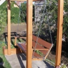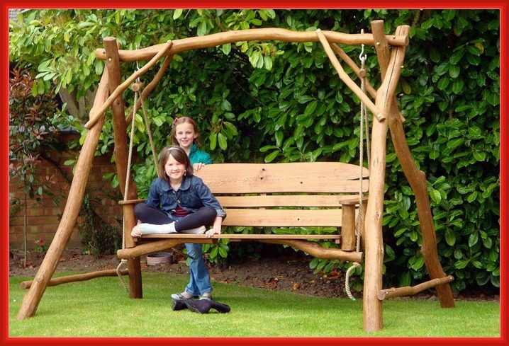 - أرجوحة مصنوعة من الخشب. يمكن صنع أي نوع من الأرجوحة تقريبًا من الخشب: إطار أو بندول أو معلق. ميزة هذا النوع هي توافر المواد. كقاعدة عامة ، يوجد دائمًا العديد من اللوحات في البلد أو في المنزل الريفي لإنشاء أبسط هيكل ممكن. تشمل العيوب قابلية الشجرة للتدمير ، يجب إزالة هذه التقلبات لفصل الشتاء أو ، إذا كانت ثابتة ، مغطاة بفيلم ، للحماية من الرطوبة.