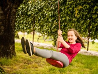- 7 سنوات فما فوق. الأطفال في سن المدرسة الابتدائية يعشقون البنجي والأراجيح المعلقة من نوع “الإطارات على الحبل” ، حيث يلزم العمل المنسق لجميع المجموعات العضلية. من أجل البقاء في مثل هذا التأرجح ، فأنت بحاجة إلى القوة والبراعة التي يتمتع بها الأطفال البالغون من العمر سبع سنوات..
