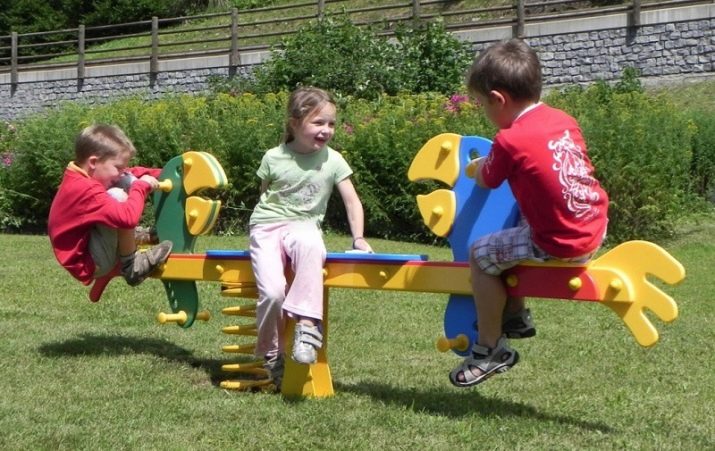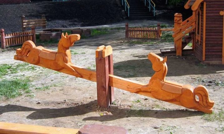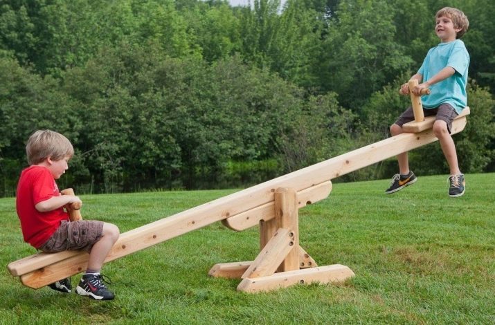- بندولات التأرجح (عارضة التوازن). لوح بمقاعد بمحاذاة الحواف ، يقف على دعامة ويتم دفعه عن طريق دفع الأطفال مع رفع أقدامهم عن الأرض.