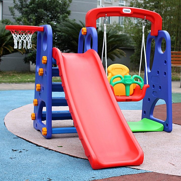 - أرجوحة بلاستيكية. تستخدم هذه المواد لعمل تقلبات للأطفال الصغار. إنه خفيف الوزن ومتين وموثوق ويأتي بألوان زاهية. بالنسبة للتأرجح ، يتم اختيار بلاستيك صديق للبيئة بدرجة عالية من ثبات الضوء. التأرجح متعدد الألوان لا يتلاشى كثيرًا في الشمس ، حتى لو ظل معلقًا في الخارج طوال فصل الصيف. المقعد مصنوع من هذه المادة (على شكل ألواح بلاستيكية مجمعة معًا) أو إطار (على شكل “حفاضات” حيث يجلس طفل صغير).