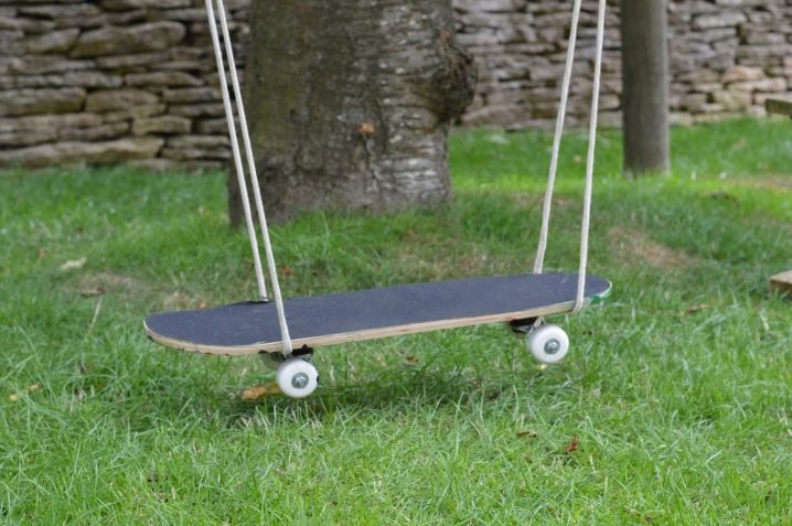 يعد التزلج خيارًا ممتازًا للمقعد للتأرجح المعلق ، ولكن يوصى فقط بلفه بشيء ناعم مسبقًا ، لأن سطح اللوح صنفرة..