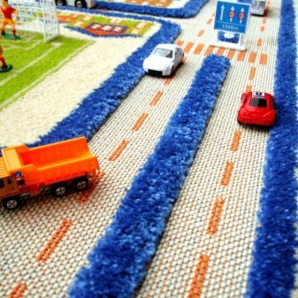 مع ظهور مثل هذه السجادة في غرفة الأطفال ، يمكن للأمهات القيام بالأعمال المنزلية بهدوء أو الجلوس مع فنجان من القهوة العطرية ، مع العلم أن الطفل مشغول بالعمل. ميزة أخرى لسجادة الطريق هي وظيفتها المعرفية والتعليمية. بمساعدة اللعبة ، يتعلم الأطفال الكثير من الأشياء الجديدة لأنفسهم: قواعد السلوك على الطريق وبالقرب منه ، والحياة المزدحمة لمحطة السكة الحديد ، وتنظيم حركة المرور داخل المدينة ، وتشغيل المطار ، إلخ. السجادة مصنوعة وفقًا لمبدأ التصميم ثلاثي الأبعاد الحديث. مثل هذا التطبيق الحجمي يطور المهارات الحركية الدقيقة ، وفكرة السجادة على شكل طريق تنشط التفكير والخيال..