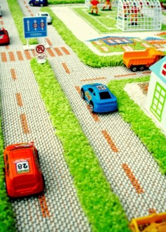 مع ظهور مثل هذه السجادة في غرفة الأطفال ، يمكن للأمهات القيام بالأعمال المنزلية بهدوء أو الجلوس مع فنجان من القهوة العطرية ، مع العلم أن الطفل مشغول بالعمل. ميزة أخرى لسجادة الطريق هي وظيفتها المعرفية والتعليمية. بمساعدة اللعبة ، يتعلم الأطفال الكثير من الأشياء الجديدة لأنفسهم: قواعد السلوك على الطريق وبالقرب منه ، والحياة المزدحمة لمحطة السكة الحديد ، وتنظيم حركة المرور داخل المدينة ، وتشغيل المطار ، إلخ. السجادة مصنوعة وفقًا لمبدأ التصميم ثلاثي الأبعاد الحديث. مثل هذا التطبيق الحجمي يطور المهارات الحركية الدقيقة ، وفكرة السجادة على شكل طريق تنشط التفكير والخيال..