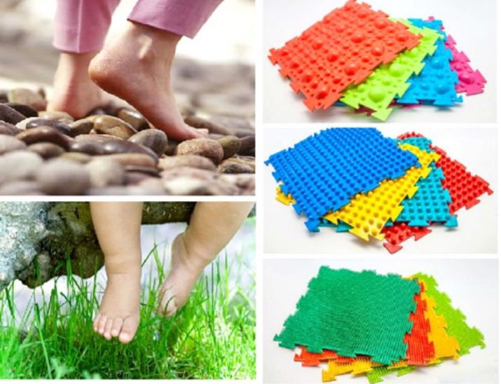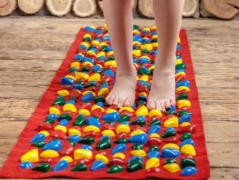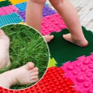 تختلف في المواد التي صنعت منها. يمكن أن يكون من السيليكون والبلاستيك. يمكنك أن تصنع نفسك من الكستناء وأغطية الزجاجات والضفائر المختلفة. كما أن صلابة سجادات تدليك القدم مختلفة أيضًا. يمكن أن تكون ناعمة ومرنة ، للأطفال في السنوات الأولى من الحياة ، أو يمكن أن تكون صعبة للغاية بالنسبة للأطفال الأكبر سنًا. الحصائر الطبية معروضة للبيع أيضًا على شكل ألغاز منفصلة. يمكنك اختيار نسيج مختلف وتصميم سجادة من 8 وحدات ، أو يمكنك تغطية غرفة الأطفال بأكملها. ستقلد سجادة التنضيد هذه بشكل أفضل المشي حافي القدمين في الطبيعة ، وبشرط أن تكون الغرفة بأكملها مغطاة ، سيتعين على الأطفال المشي عليها على أي حال..
