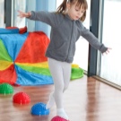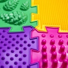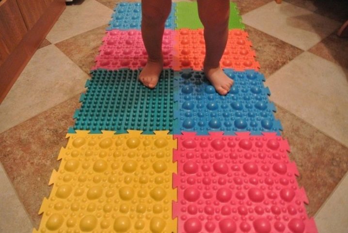 - في غرفة الأطفال ، يمكنك تثبيت حصائر التدليك على شكل نتوءات ، والقفز من واحدة إلى أخرى ، وسيحصل الطفل على تدليك نقطي للقدمين.