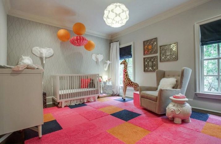 تعتبر إحدى المزايا الرئيسية للسجاد أيضًا حمايتها للغرفة من الغبار والرطوبة الزائدة.. نظرًا لمظهره الجميل ، يمكن استخدام عنصر الديكور هذا لتقسيم الحضانة وتقسيمها إلى مكان للألعاب والاسترخاء. تنظم السجادة المختارة بشكل صحيح مساحة المعيشة بطريقة أصلية ، وتضفي عليها الحيوية بظلال وأنماط وزخارف مختلفة.