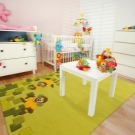 السجاد باللون البرتقالي أو الأصفر سيعطي مزاجًا إيجابيًا في الحضانة. من أجل إضفاء الحيوية على الجو ، يوصى بدمج هذه الألوان مع الأخضر أو الأزرق أو الأحمر. والسجاد بزخرفة المربعات تملأ الغرفة بمساحة إضافية وإضاءة..