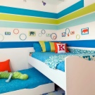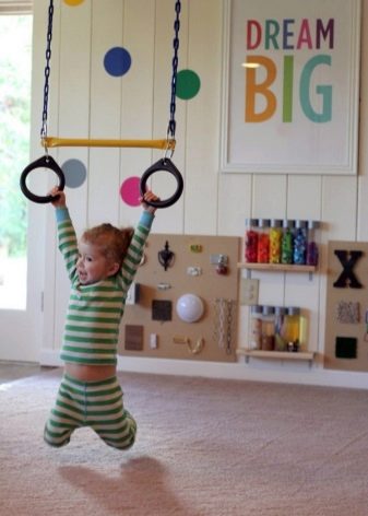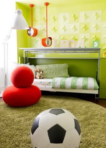 في غرفة مليئة بالأثاث ذي الألوان الزاهية ، سيبدو متناغمًا مع غطاء معياري ناعم به رسومات وألغاز. سوف تضفي الأرضيات المطاطية لمسة جمالية على حضانة الرياضيين ، خاصة إذا تم دمجها مع سجادة بألوان مختلفة أثناء التركيب..