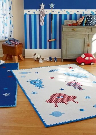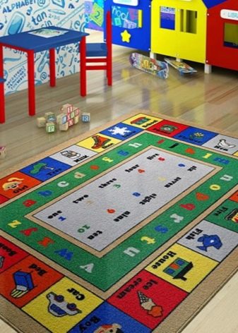 بالنسبة إلى الحضانة ، فإن السجادة ذات الوبر القصير مناسبة ، والتي يسهل الحفاظ عليها نظيفة. ربما تكون النسخة الحديثة من السجاد ذات التصميم المعياري أكثر ملاءمة. يجب إيلاء اهتمام خاص لتكنولوجيا الرسم. لا يجب عليك اختيار المنتجات ذات طريقة الصباغة المطبوعة ، فهذه المنتجات ليست مصبوغة بعمق في الألياف وستفقد اللون بشكل أسرع. كلما كانت السجادة أكثر كثافة ، كلما طال أمدها.