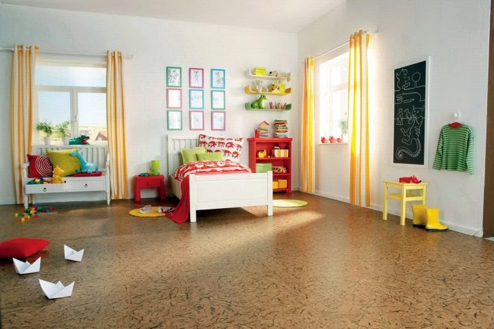 من غير المرغوب فيه وضع ألواح من الفلين في غرفة الأطفال بسطح محمي بالورنيش مع إضافة رقائق خزفية ، حيث يفرك الطفل ركبتيه ومرفقيه. الخيار الأمثل هو بلاط الفلين بسمك 6 مم ، مصنوع من الحواف العلوية من القشرة الطبيعية مع طلاء المصنع مسبقًا. من المهم أن يتعافى الطلاء ذو القشرة العلوية بمرور الوقت من الخدوش والخدوش الطفيفة ، وهذا أمر يستحق أيضًا النظر فيه عند الاختيار.