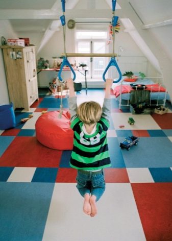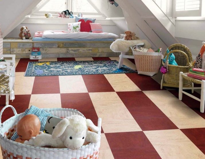تستخدم الأرضيات المطاطية أيضًا على نطاق واسع في غرف الأطفال. مزاياه: لينة جدا ، ضخمة وممتصة للصوت ، في حين أنها قادرة على حماية الطفل من الصدمات أثناء السقوط.