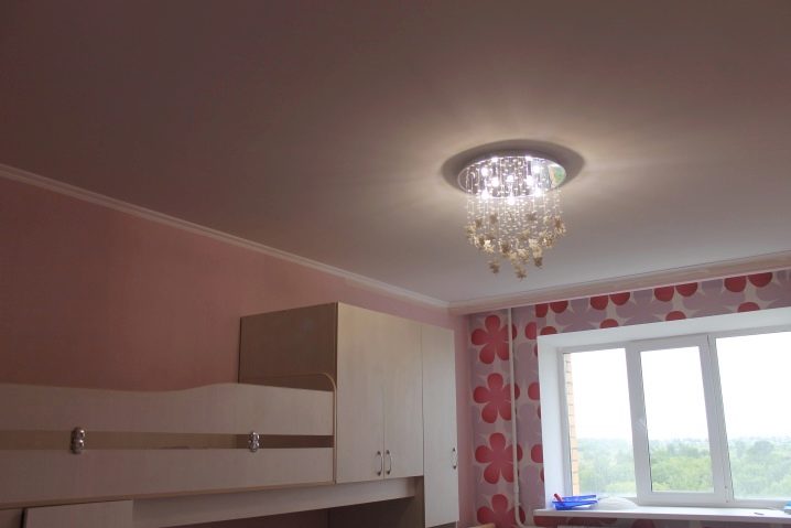 تخبرنا أسطورة أخرى عن السقوف الممتدة في غرفة الأطفال عن الحاجة إلى اختيار مصابيح خاصة لهم. في الواقع ، لا توجد قيود على اختيار تركيبات الإضاءة للأسقف المتوترة ، على الرغم من وجود اختلاف في التثبيت (التركيبات المدمجة مثبتة على السقف الأساسي). أيضًا ، يتم ضبط الطاقة الموصى بها لمصابيح الإضاءة الملولبة في النطاق من 35 إلى 60 واط ، وإلا فإن الطبقة الرقيقة للسقف المرن قد تتشوه أو تتشقق.