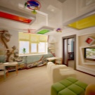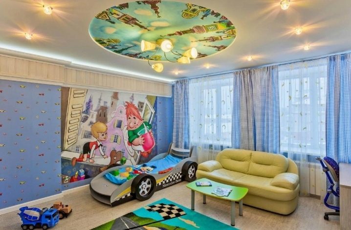 فئة منفصلة هي السقوف المتوترة متعددة المستويات. إنها تساعد على تقسيم غرفة الأطفال بشكل تركيبي إلى مناطق وظيفية أو مواضيعية. تتيح المستويات المختلفة للأسقف المعلقة إمكانية وضع معدات تكييف الهواء الضخمة ونظام الإضاءة المعقد خلفها ، وإخفاء عيوب السقف الرئيسي ، وحتى تغيير هندسة غرفة الأطفال بصريًا ، إذا كان ذلك مطلوبًا في مشروع التصميم.