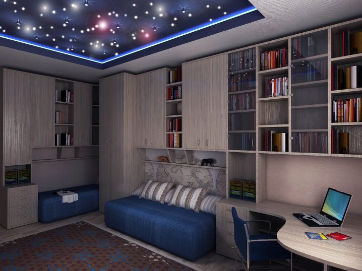 يشعر جميع الأطفال ، دون استثناء ، بمشاعر رقة متساوية تجاه السقف الممتد ، الذي يشبه السماء المرصعة بالنجوم – وأصغر الحالمين ، والبراغماتيين الصغار ، والسيدات الشابات الرومانسيات ، وما زلن بلا لحية ، لكنهن بالفعل معجبين شجعان جدًا بالرحلات الجوية في الأحلام و في الواقع. تساعد تقنية النجمة المتلألئة على إعادة إنشاء مصابيح LED صغيرة أو كابلات ألياف ضوئية رفيعة متصلة بسقف ساتان ممتد أو تنزل من خلاله إلى ارتفاعات مختلفة ، وتتلقى الضوء من جهاز العرض ويعكسه إلى نهايات هيكل السقف.