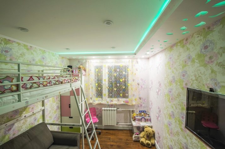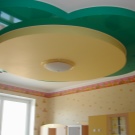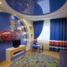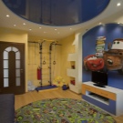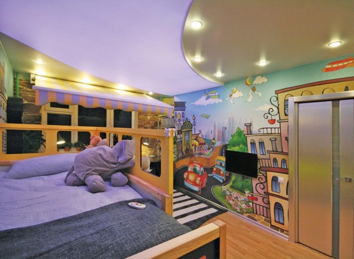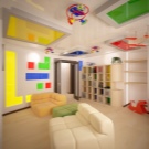فئة منفصلة هي السقوف المتوترة متعددة المستويات. إنها تساعد على تقسيم غرفة الأطفال بشكل تركيبي إلى مناطق وظيفية أو مواضيعية. تتيح المستويات المختلفة للأسقف المعلقة إمكانية وضع معدات تكييف الهواء الضخمة ونظام الإضاءة المعقد خلفها ، وإخفاء عيوب السقف الرئيسي ، وحتى تغيير هندسة غرفة الأطفال بصريًا ، إذا كان ذلك مطلوبًا في مشروع التصميم.