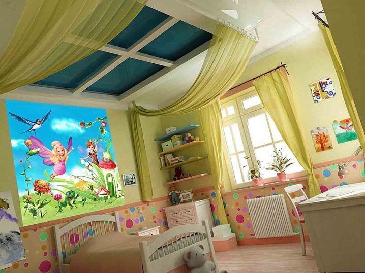 الأسقف ذات الصور المطبوعة مناسبة للأطفال الصغار. سوف يساعدونك على الانغماس في عالم خيالات الأميرات والسفن والفضاء.