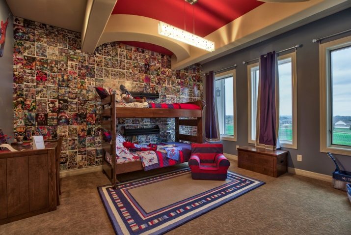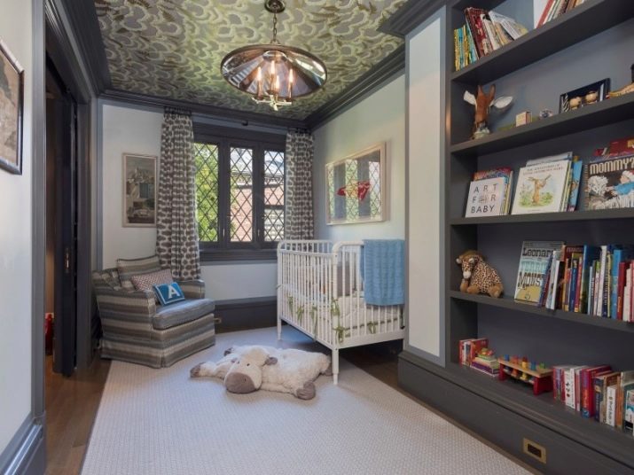 تحظى طباعة الصور على السقف في الحضانة بشعبية كبيرة أيضًا ، ولكن لكي تبدو الخلفية جيدة ، لا يزال السقف بحاجة إلى تسوية. للأطفال الأصغر سنًا ، يمكنك اختيار أبطال رسوم متحركة مختلفين هنا. بالنسبة للأطفال الأكبر سنًا ، يمكنك اختيار ورق حائط للصور به صورة للسماء أو حوض مائي ، ومن الأفضل اختيار مادة طبيعية لخلفية السقف في الحضانة. على الرغم من أن الخلفيات الورقية ليست متينة ، إلا أنها صديقة للبيئة وتسمح للسقف “بالتنفس”. غطاء السقف هذا لن يسبب الحساسية لدى طفلك..