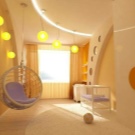 يمكنك أيضًا تسوية السقف وطلائه بالطلاء المائي. هذا الديكور بسيط ومقتضب. عيبه هو أن الطلاء قد يتشقق بمرور الوقت وسيتعين إعادة طلاءه. لكن الطفل ينمو أيضًا ويريد شيئًا جديدًا في داخل الغرفة أيضًا. لذلك ، فإن الإصلاحات في غرفة الأطفال ليست شائعة ويمكن تجاهل هذا العيب. يمكنك إحياء مثل هذا السقف عن طريق ربط ألعاب كبيرة وثريا مثيرة للاهتمام به. لن يجذب هذا انتباه طفلك فحسب ، بل سيكون أيضًا مساعدة تنموية..