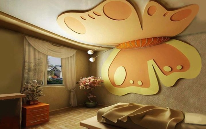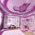 بالإضافة إلى ذلك ، يوفر هذا السقف إمكانيات تصميم غير محدودة تقريبًا. هنا يمكنك تجسيد الفكرة الأكثر جرأة. تحظى أفكار السماء الكونية بالنجوم بشعبية كبيرة. مثل هذا السقف سوف يهدئ الجهاز العصبي للطفل قبل النوم. بالإضافة إلى ذلك ، يمكن أن تكون الطبقات المتعرجة بالقرب من السقف مصنوعة من دريوال. بالنسبة للفتيات ، يمكنك ترتيبها على شكل فراشات وللأولاد على شكل طائرة..