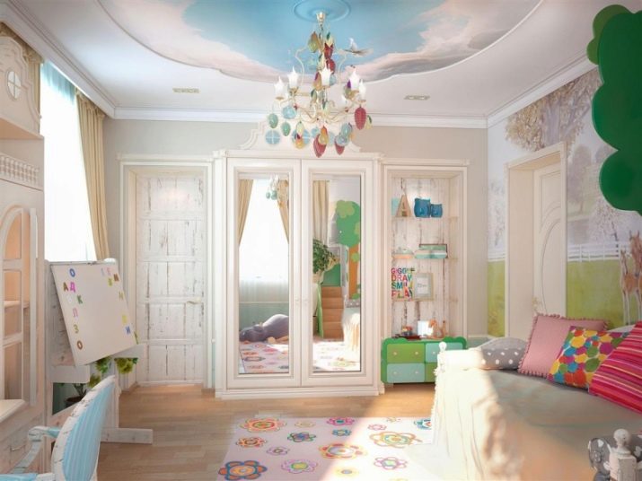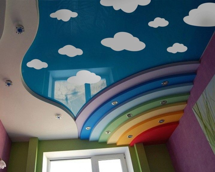 عند تزيين السقف في غرفة الأطفال ، لا تحتاج إلى المبالغة فيه. لأنه حتى أجمل الأسقف ، ولكنه شديد السطوع ، مع الكثير من العناصر والأنسجة ، سيضغط على طفلك ، مما يجعله سلبيًا..